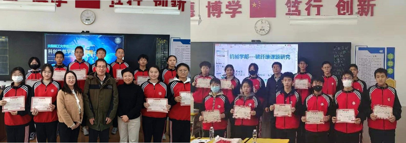科研为伴,且行且思;微光成炬,向光而行。为充分发挥机械工程国家级实验教学示范中心(大连理工大学)服务区域创新创业教育发展的独特优势与功能,助力打造“双高融合”共育拔尖科研创新人才的新模式,2023年12月6日,中心教师代表包海涛、刘建伟走进大连理工大学附属高级中学科创学部指导开展课题开题立项活动。大连理工大学附属高级中学常务副校长马志科、科创学部教师及高一、二年级全体学生参与本次活动。