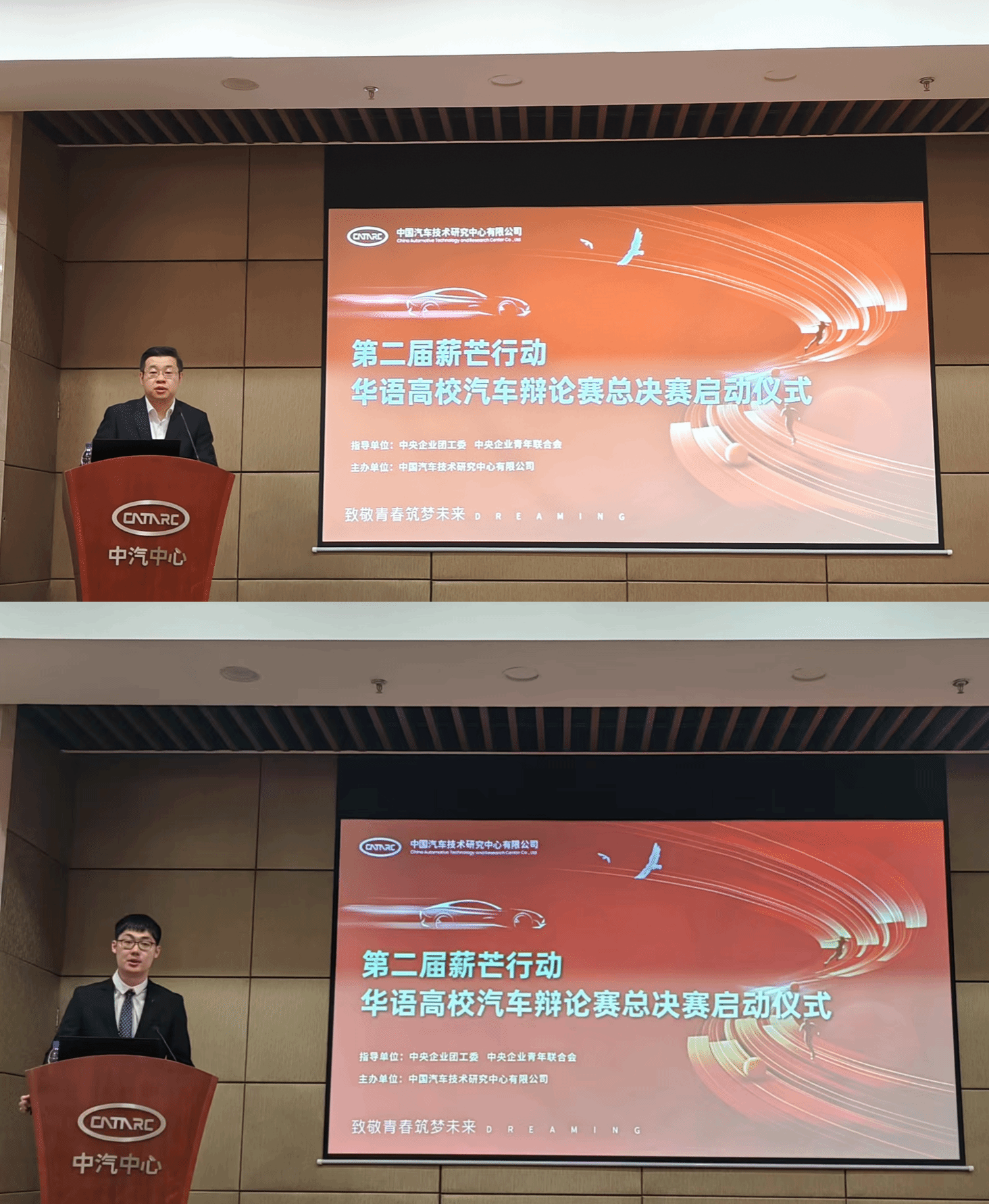 4月18日上午,启动仪式在中汽中心主楼第一会议室举行,仪式由中汽中心人力资源部张煜栋主持。中汽中心党群工作部长、团委书记曹宇致辞,表达对各高校代表队的欢迎。之后全体与会人员观看巡回赛阶段回顾视频,机械工程学院学生代表田思雨宣读参赛宣言。