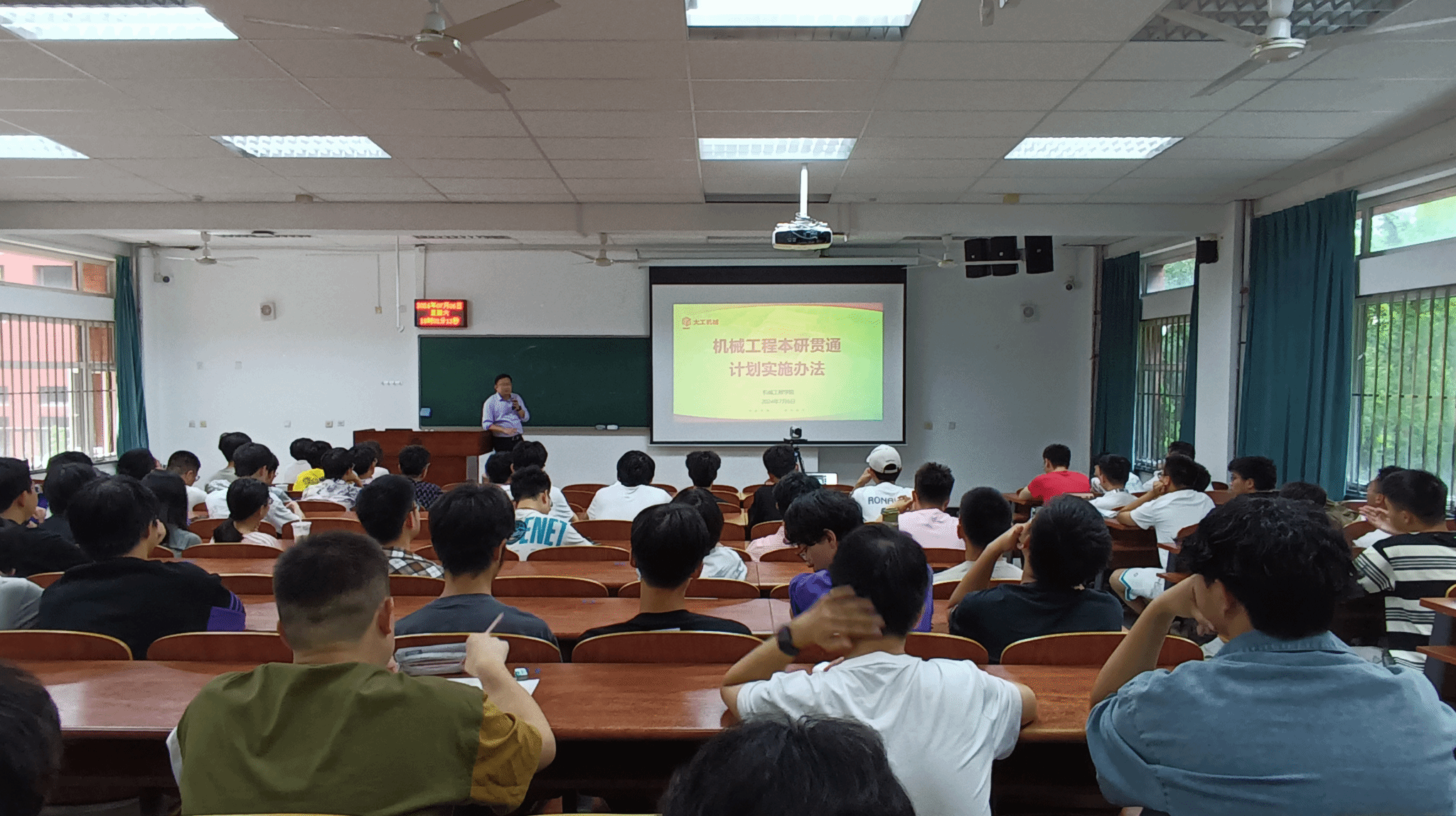 7月6日晚,机械工程学院副院长马广义教授在综合教学2号楼B106为机械专业大一本科生进行了2024年本研贯通计划宣讲,约有80余名本科生参加。