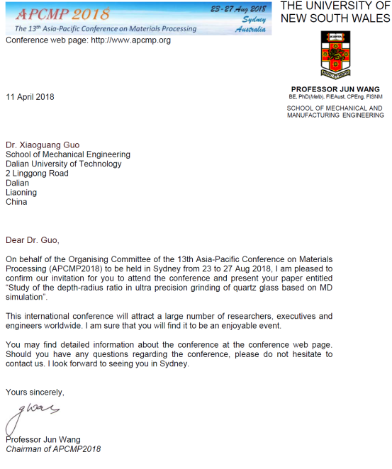 应 APCMP 大会主席Jun Wang 教授 邀请,我单位郭晓光拟赴 澳大利亚悉尼 国家(地区)进行工作访问(学术交流)。现将该同志拟出访情况公示如下: