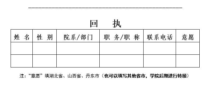 备注:意愿除湖北省、山西省、丹东市外也可填写其他省市,机械学院后期将与其他省市负责院系联系,进行转接。