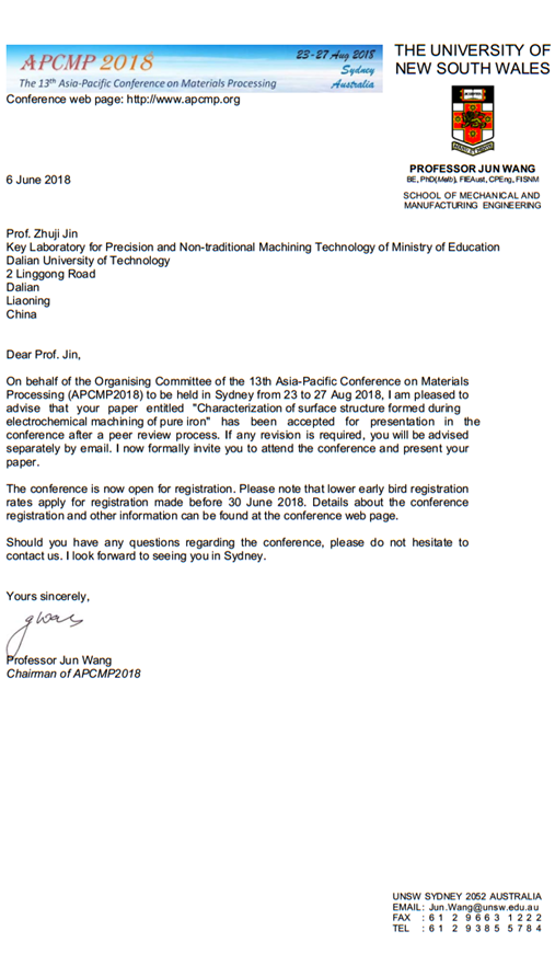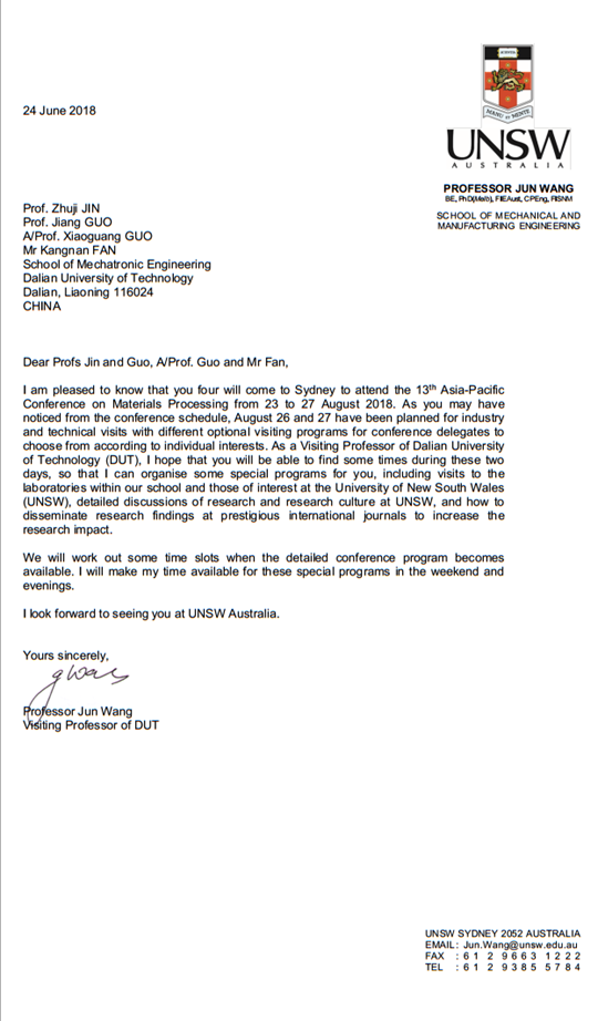 应 APCMP大会主席Professor Jun Wang邀请,我单位 金洙吉等 拟赴 澳大利亚(悉尼)国家(地区)进行工作访问(学术交流)。现将该团组拟出访情况公示如下: