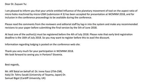 应WCMNM组织委员会邀请,我单位余祖元拟赴斯洛文尼亚参加WCMNM 2018学术会议。现将该团组拟出访情况公示如下: