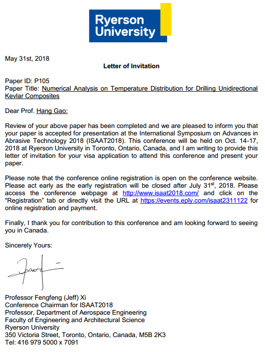 机械工程学院高航赴加拿大国家参加学术会议(访问)校内公示