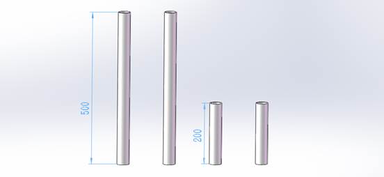 (2)障碍物:选用直径为φ40mm的金属圆管作为障碍物,分别为(直径×壁厚-高度)φ40mm×2mm-500mm和φ40mm×2mm-200mm各两件,如图2所示。