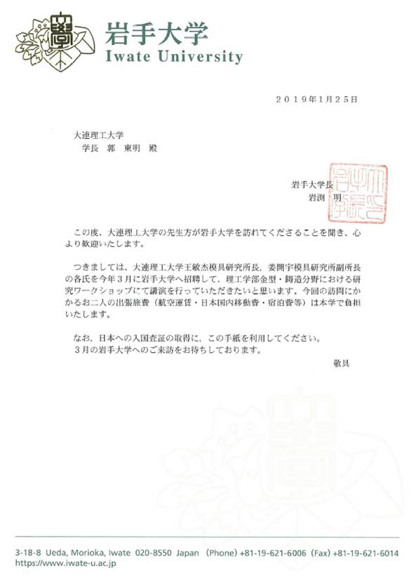应日本岩手大学的邀请,我单位王敏杰等2人拟赴日本(岩手大学)进行工作访问。现将该团组拟出访情况公示如下: