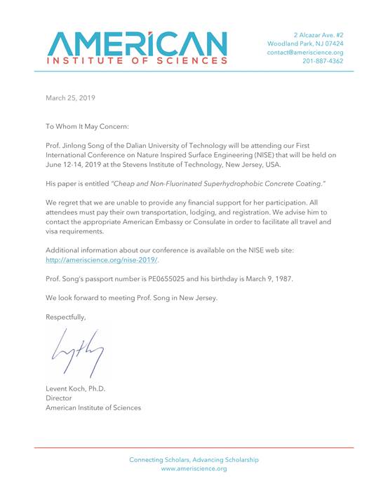 应美国科学院Levent Koch主任及史蒂文斯理工学院Chang-Hwan Choi教授邀请,我单位宋金龙拟赴美国参加学术会议。现将该团组拟出访情况公示如下: