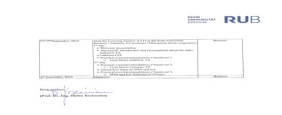 2019年9月2日-3日 访问波鸿鲁尔大学参加在学习工厂中使用精益管理和数字化的学习