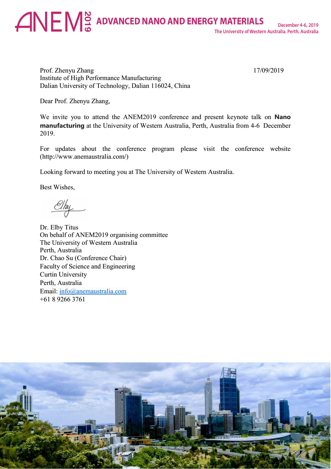 Advanced nano and energy materials(先进纳米与能源材料ANEM2019)在澳大利亚珀斯的西澳大学举行,会议邀请了来自学术界、的科学家、工程师和学生参加。会议涵盖先进纳米材料、能源材料和先进石墨烯材料等制备工艺、表征、理论、建模、测试、应用等。