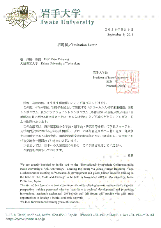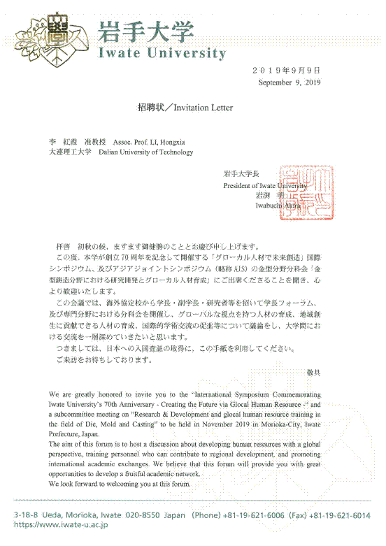 11月14-15日 参加在岩手大学举办的“2019亚洲产学研合作模具技术学术研讨会”