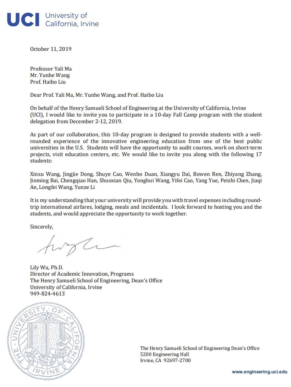 应University of California, Irvine(UCI)邀请,我单位马雅丽、刘海波、王云赫拟赴美国带团进行学术交流。现将该团组拟出访情况公示如下: