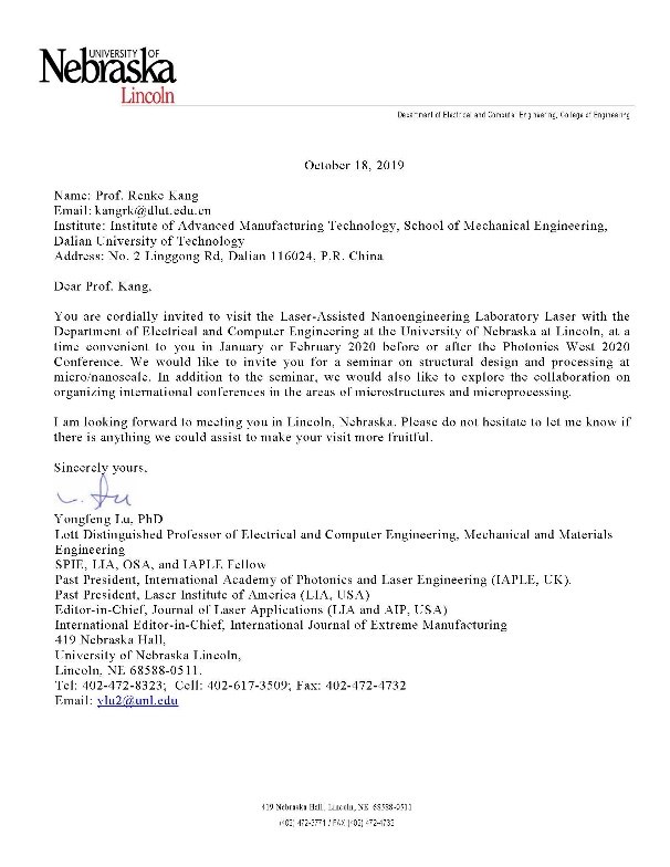 内布拉斯加大学林肯分校(University of Nebraska Lincoln),是美国著名公立研究型大学,属世界一流研究型学府,内布拉斯加大学林肯分校是内布拉斯加州最顶尖的大学,在各个学科和领域均享有声誉。内布拉斯加大学林肯分校激光辅助纳米工程实验室,具有先进的加工、测试仪器和设备,此次出访将就硬脆材料,光学材料加工进行学术交流,并探讨进一步项目合作事宜。