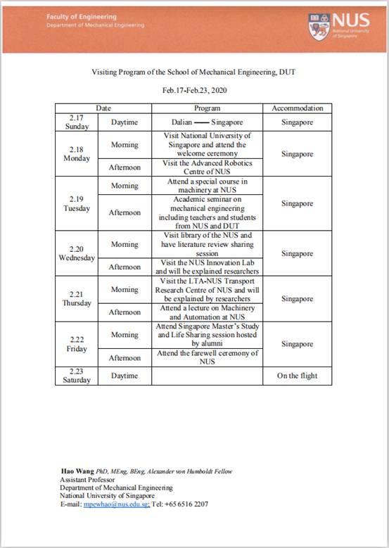 2月19日 访问新加坡国立大学,参与新加坡国立大学机械专业特别课程,与新加坡国立大学师生进行机械工程学术研讨会;