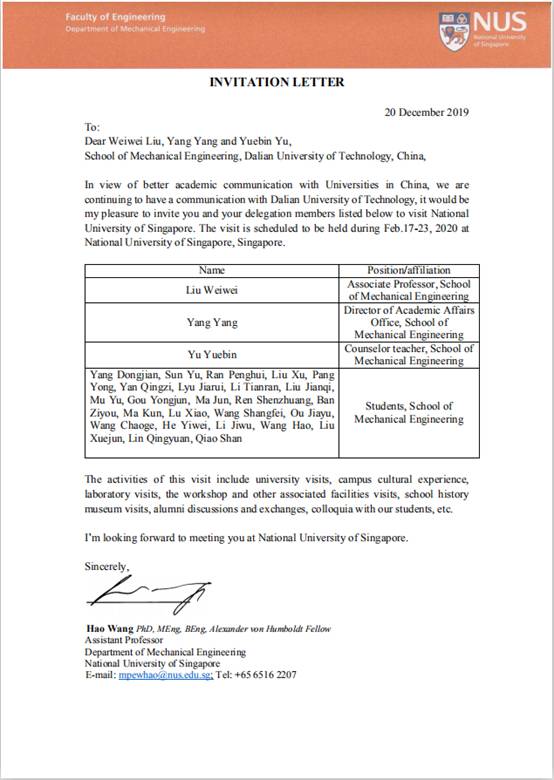 应新加坡国立大学邀请,为加强中新高校文化交流,开拓我校研究生视野,机械工程学院委派刘伟嵬、杨洋、于月滨带领我院25名研究生赴新加坡交流。现将该团组拟出访情况公示如下: