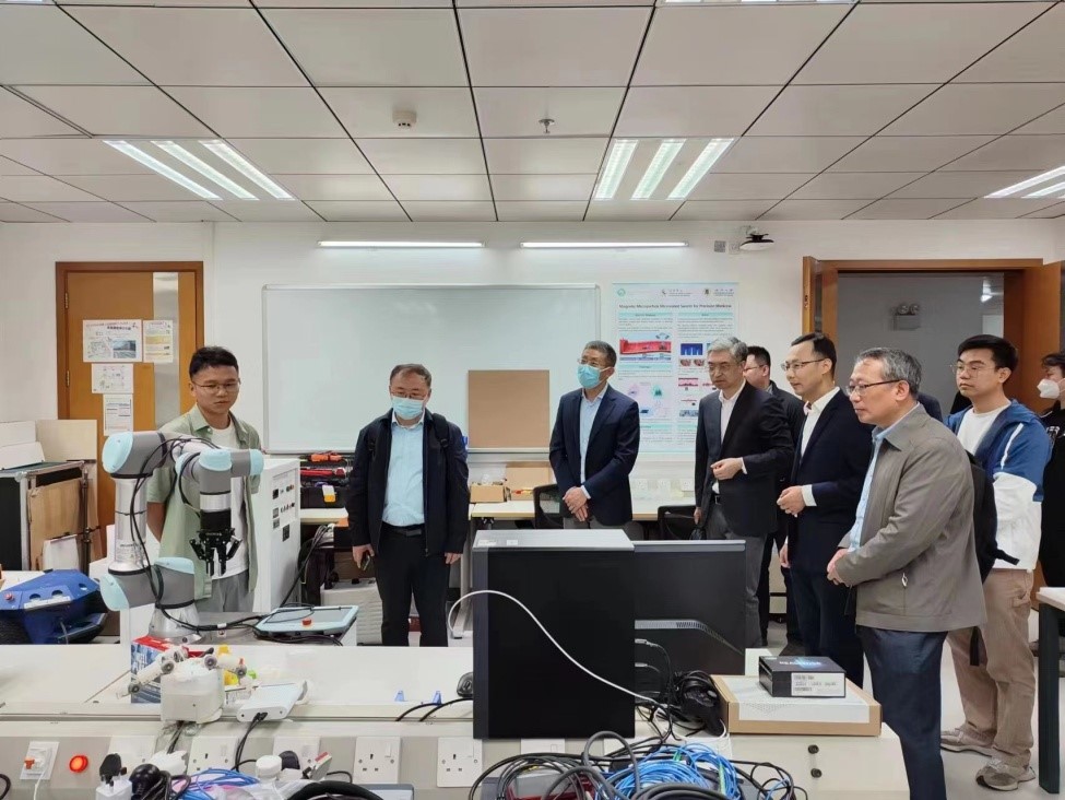 2月19至20日团队访问了香港城市大学董立新教授纳米机器人实验室,董立新教授重点介绍了三维纳米机器人操作、纳米机器人点焊和纳米机器人智能末端执行器的技术难点与未来发展,同时双方在科研创新、人才培养、实验室管理、仪器共享等方面进行了深入交流。