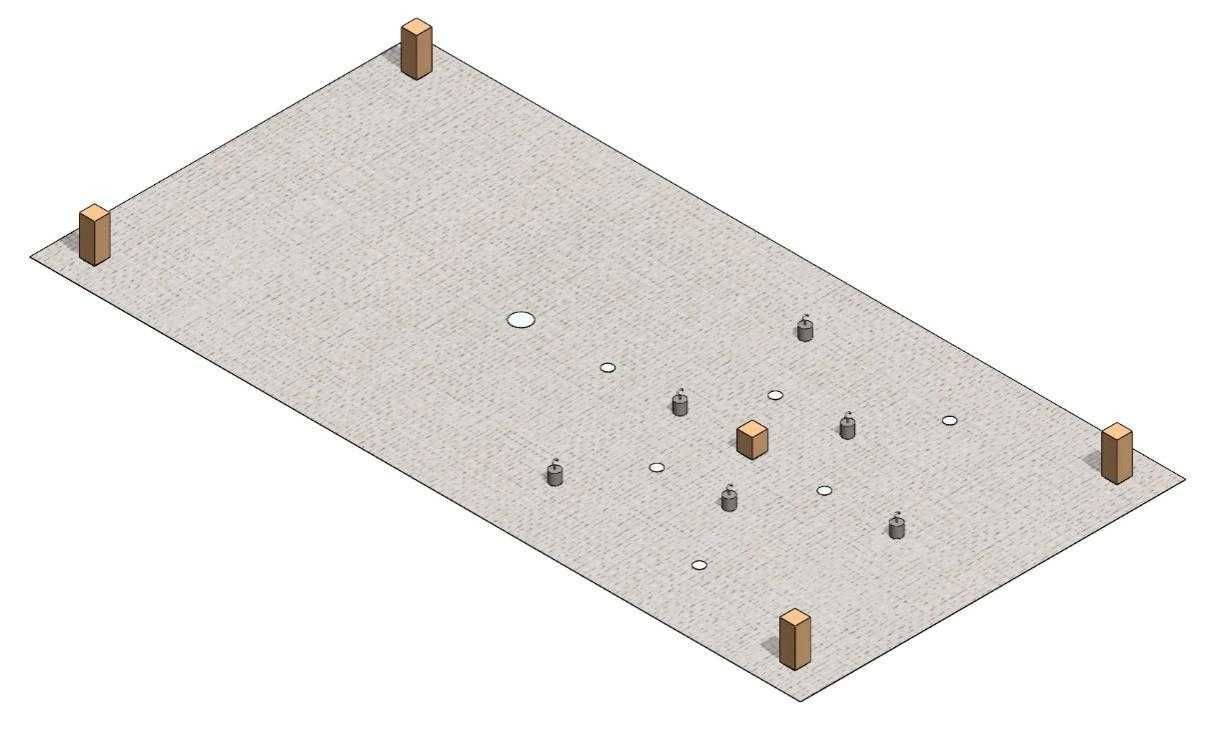 置物平台:共设置五个置物平台固定位,且这5个固定位上有60mm×60mm 的辅助线分别如图2中红色方形所示,正式比赛时每个置物平台采用长、宽均为60mm木制方柱,其中位于场地四个角的方柱高200mm,取物区中心的方柱高100mm。木制方柱如图4所示。(链接:https://item.taobao.com/item.htm?spm=a1z0k.7628869.0.0.305037deSRLSuJ&id=730772059407&_u=t2dmg8j26111)