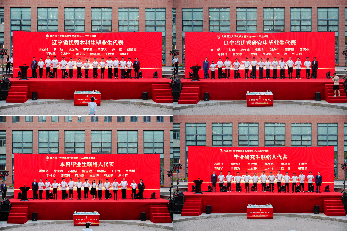 学院党委书记亓昌教授宣读2024届毕业生班级联络人名单,勉励同学们到祖国需要的地方贡献“机械力量”。学院领导为2024届辽宁省优秀毕业生代表颁奖并为2024届毕业生班级联络人颁发聘书。