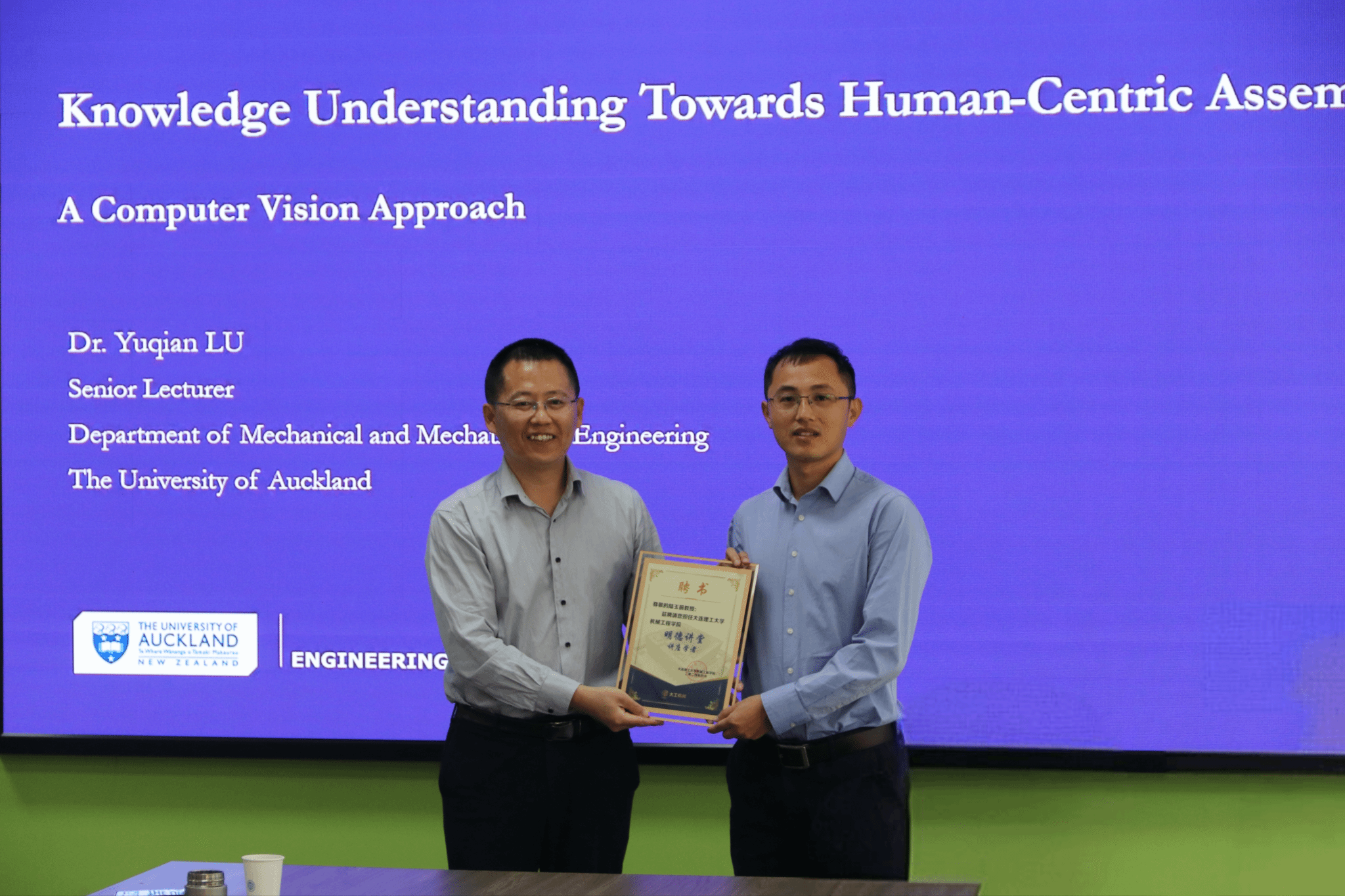4月29日,大连理工大学机械学院2012届毕业生、新西兰奥克兰大学机械工程系高级讲师、制造系统教研室主任、工业人工智能课题组负责人陆玉前博士受邀做客机械工程学院“明德讲堂”,在知方楼3178室以“Knowledge Understanding Towards Human-centric Assembly: A Computer Vision Approach”为题,为50余名师生带来了一场生动的经验分享和详实的学术报告。