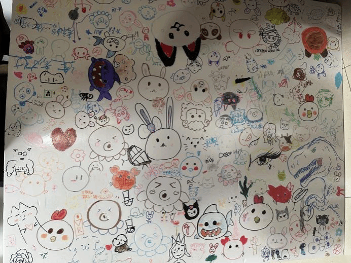 活动现场,一块原本空白的展板成为大家心灵创意的汇聚地。同学们纷纷拿起画笔,发挥奇思妙想,在展板上绘出五彩斑斓的图案。有可爱俏皮的小动物形象,萌态可掬的兔子、憨态可掬的小熊等,仿佛在传递着纯真与美好;还有充满活力的花朵、太阳等元素,用鲜艳色彩勾勒出对生活的热爱。不同风格、色彩的画作相互交织,共同构成一幅绚丽且富有生命力的心灵画卷。