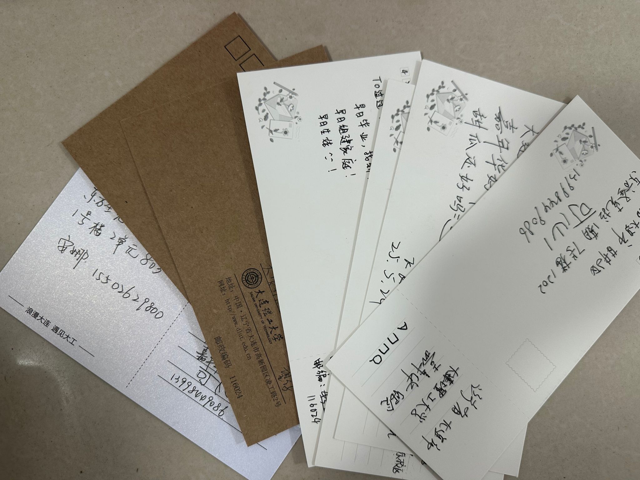 同学们沉浸于色彩创作后,又在明信片上认真书写。一笔一划,或是对未来自己的鼓励,期许在逐梦路上无畏前行;或是对远方亲友的深情,诉说着心底的思念与牵挂。这些明信片,从活动现场出发,带着手绘的温度与真挚的情感,踏上不同的旅程。