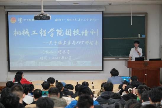 2025年11月25日晚,大连理工大学机械工程学院2025-2026年秋季基层分团校第三期于建筑艺术馆105顺利举行。本次团校聚焦理论学习,科技创新和文化培育,为同学们带来一场知识与经验交织的盛宴。在本期分享会上,机械工程学院团学骨干王雯婷、杨涛瑞,何岳东倾囊相授他们自身的经验。