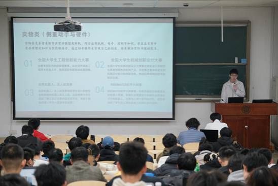 杨涛瑞同学则以“大学中的那些科创与竞赛”为主题与同学展开分享。他详细地为各位同学罗列各种各样的竞赛与科研项目,勉励同学们说大学机会丰富多样,竞赛科研并非洪水猛兽,要放下畏惧心理,以尝试一切的心态大胆探索,最终会找到属于自己的赛道。他也提到,竞赛与科研往往也会遇到各种困难,我们在不轻易放弃的基础上也要学会适当取舍,不要顾此失彼。为学弟学妹的成长起到了指点迷津的作用。