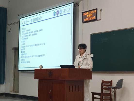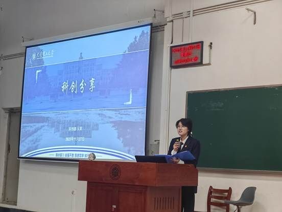 吴双同学的分享则将焦点集中在科技创新领域。她以其丰富的参赛经验为基础,全面梳理了“挑战杯”系列赛事的特点与区别,特别对我校将于2026年承办的“挑战杯”中国大学生创业计划竞赛的赛制变化和参赛要求进行了前瞻性分析。在分享中,她从项目选题的灵感来源、团队组建的优化配置,到申报材料的撰写技巧、现场答辩的注意事项,都给出了具体而实用的建议。她充满激情的讲述,极大地激发了同学们参与科技创新活动的热情与信心。