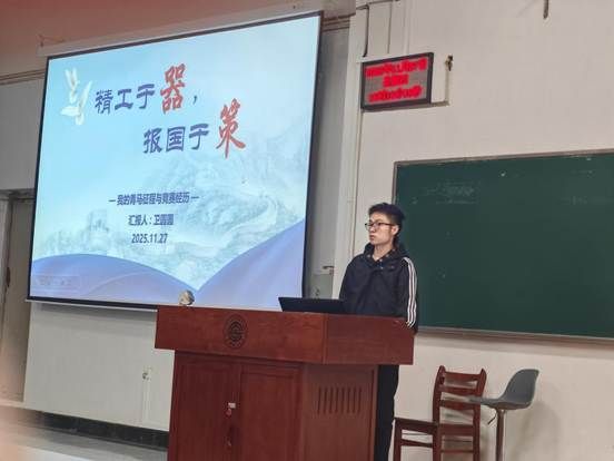 卫圆圆同学登台,以其在“青马工程”中的亲身经历为主线,为学员们带来了一场富有启发性的分享。他不仅追溯了青马工程的历史渊源和发展历程,还详细解读了从校级到国家级的四级培养体系的特色与要求,为有志于加入该项目的同学指明了努力方向。在谈及学科竞赛时,他敏锐地指出了近年来保研政策中科创竞赛权重增加的新趋势,并结合机械专业特色,深入剖析了机械产品数字化设计赛和铸造工艺设计赛的竞赛特点、备赛要点与评审标准,为学员们参与科创竞赛提供了清晰的路线图。