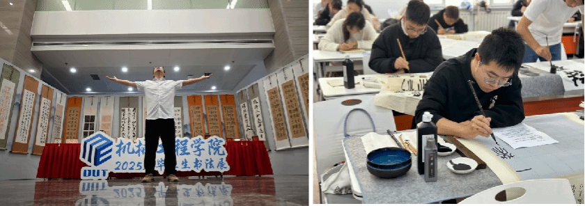 在书法协会的三年里,从骨干到副会长再到会长,他细心办好每一次日常活动,为每一位热爱书法的同学指导解惑;他认真策划大型书法活动,带领同学们卖书签、送春联、写地书,校园到处是他们挥毫的身影。在任期间,他承办百余次日常活动,带领书法协会获得2023年“十佳社团”荣誉。他说:“我要让每个参加活动的人都爱上我们如此优秀的中华传统文化。” 2025年毕业季,他和同学共同创作书法作品两百余幅赠与机械学院老师,以一场别开生面的书法展为学院献礼,感谢学院的培养。