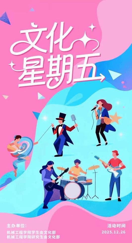 心怀理想,艺启新程。为了让大家的才华在绚丽舞台上尽情闪耀,为同学们打造一个充分展示个人魅力的空间,机械工程学院“艺起show”才艺晚会火热来袭,在2025年的最后一个周五,邀你一起踏入艺术的缤纷天地,尽享精彩节目,共度美好时光。无论你能歌善舞,还是身怀绝技,无论是小白还是大神,才艺晚会的舞台都热切期待你的加入,快来一起绽放耀眼光芒!