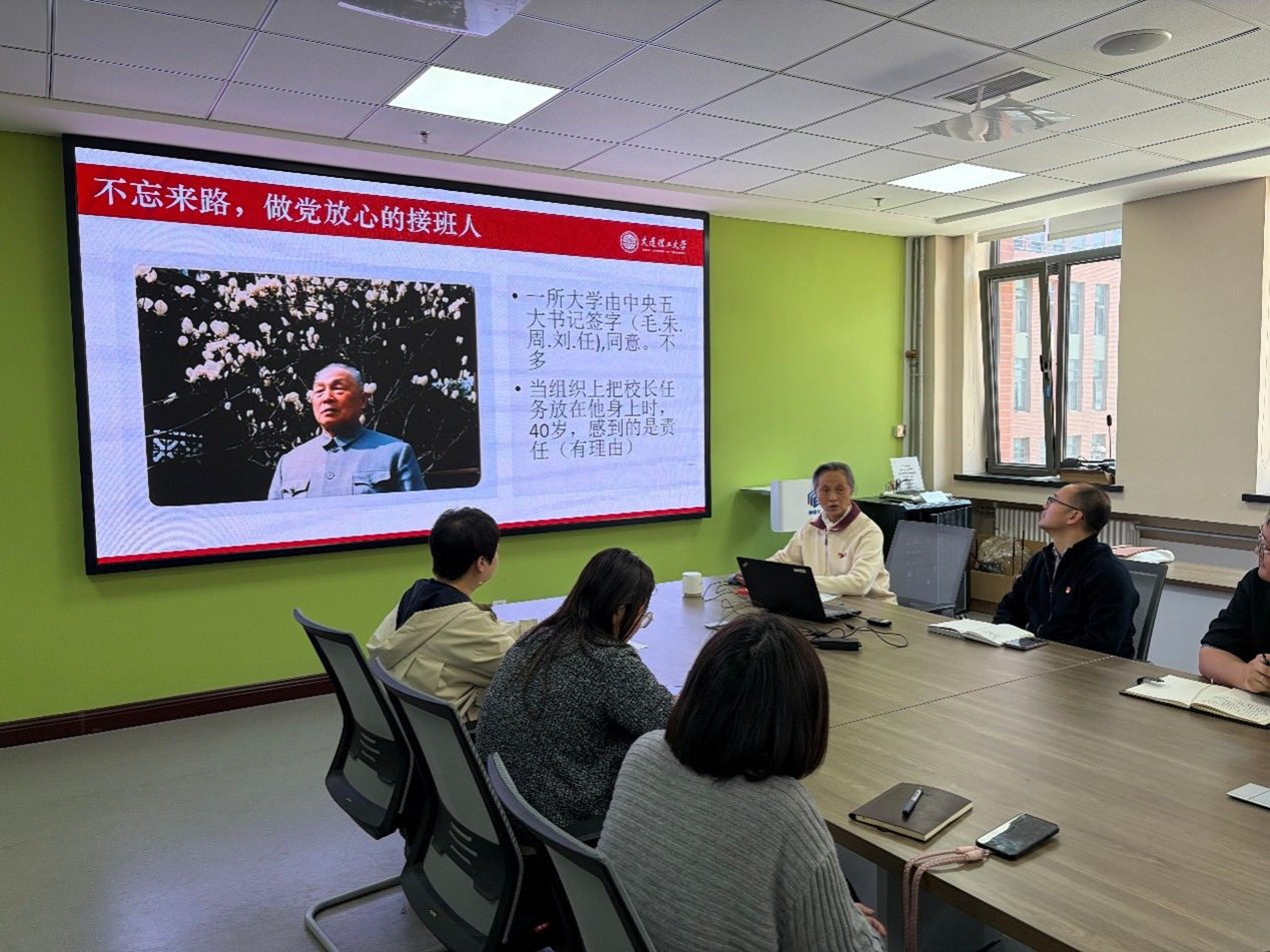 陈老师深情讲述了大连理工大学从建校初期的艰辛创业,到“大连工学院”时期的发展历程,深情追忆了屈伯川老院长的光辉事迹,生动诠释了一位红色教育家身上所凝聚的崇高品质。她详细讲述了屈老在德国留学期间刻苦攻读、立志科学报国的经历,以及归国后奔赴延安,投身革命事业的生活点滴。屈老为大连工学院鞠躬尽瘁、奋斗终身:他走遍大半个中国遍访名师,亲赴各地延揽英才;自然灾害时期与学生同吃同住,亲自到食堂帮厨;临终遗嘱更将遗体捐作医学研究,骨灰撒于校园绿化,用一生践行了“爱生如子”的赤诚与担当。