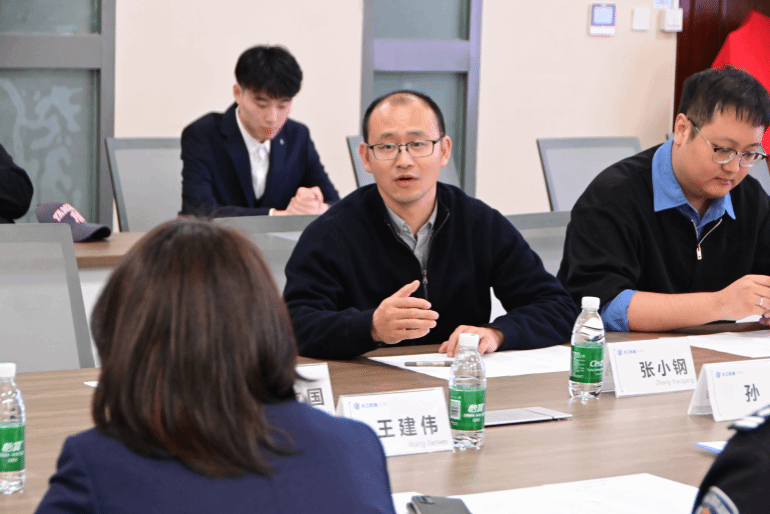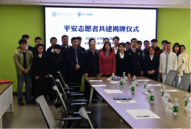 学生志愿者代表曹润民发言后,沙河口区委政法委副书记孙丹、机械工程学院党委副书记兼副院长张小钢共同为“机械工程学院平安志愿者工作站”揭牌。最后,全体参会人员合影并参观学院。