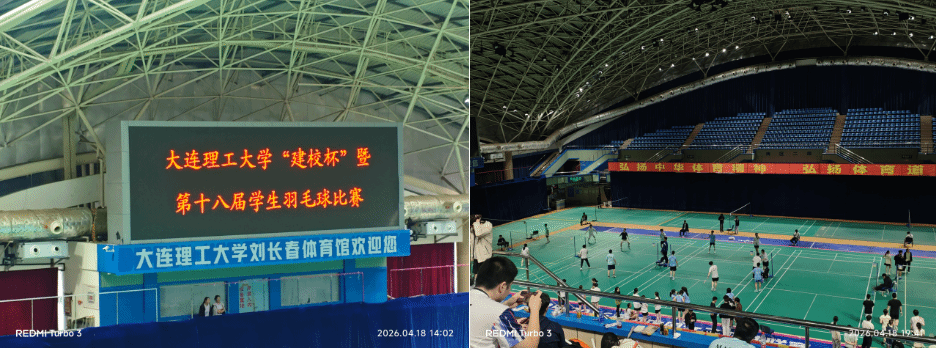 2026年4月18、19日,一年一度的“建校杯”学生羽毛球赛与刘长春体育馆举办。