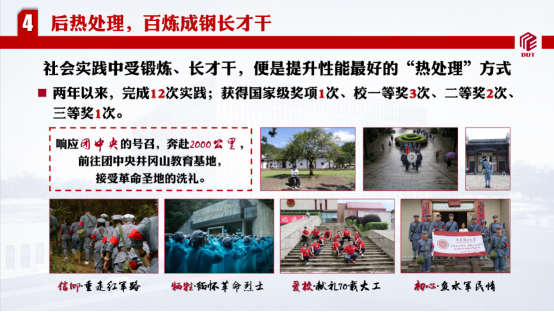 在社会实践中受锻炼、长才干,便是提升性能最好的“热处理”方式。入学两年来,赵玉鑫先后参加12次实践活动。曾前往两千公里外的团中央井冈山教育基地,接受革命圣地的洗礼;曾寻访30余位校友,深刻感受大工的红色基因。
