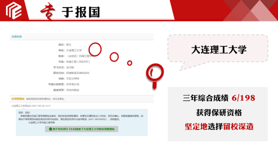 作为一名准毕业生,邸宏宇以专业前3%的成绩获得推免资格,并且他在全国推免服务系统上坚定地填上了大连理工大学。