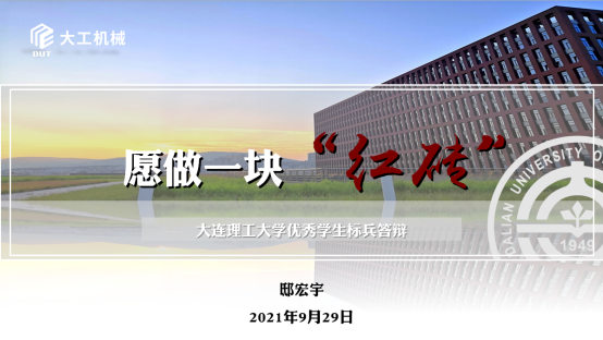 邸宏宇,2018级机械设计制造及其自动化专业本科生,中共预备党员,专业排名5/198,曾任机械工程学院团委常务副书记,现任机1807团支部书记,机2103班班导生。他立志要做一块是“红砖”,一块被大工红色基因浸润的砖,也是一块立志堆砌强国梦想、担起时代使命的砖。