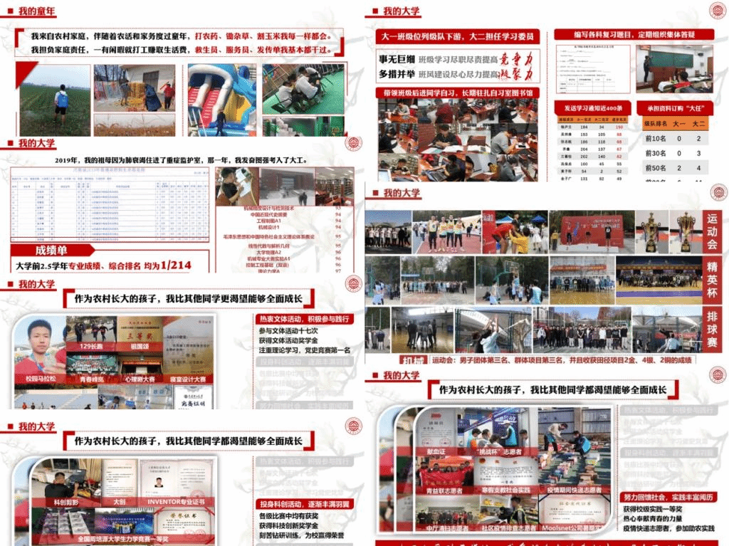 他来自贫困家庭,自幼便懂得分担家庭压力。下地锄草、收割玉米小麦、打农药这样的农活和家务伴随了他整个童年。进入大工更加发奋图强,学习工作积极上进,勤工助学、奖助学金共计四万余元。